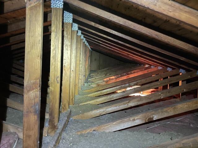 Our customer had a leak in the attic and the Roofing Company found a large amount of mold in their attic. After our inspection we also found the rafter vents were not correctly installed. We came in to remediate the attic and also correct the ventilation. We used product Mold X2 and installed new rafter vent after clearing the soffits of debris and insulation. This homes attic is cleaned and shouldn't have any problems in the future.