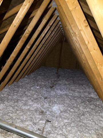 Our customer called because he didn't believe that the blown in insulation in his attic was doing the job. It appeared as though moisture was getting into the attic and maybe causing mold. Once we completed our inspection there was clearly mold on the sheathing, trusses and insulation. We cleaned the attic removed all insulation air sealed and added new Cellulose. This attic is now clean, healthy and energy efficient.