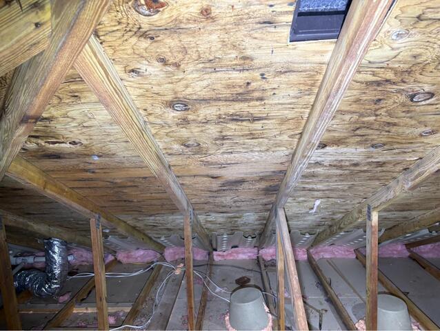 Our customers home was for sale and a home inspection showed mold in the attic. Our company came in and remediated the mold using Mold X2 and Mold X2 Botanical products. We also cleared the soffits of debris and added new duel baffles to correct the ventilation and keep this attic breathing and healthy for the new homeowners.
