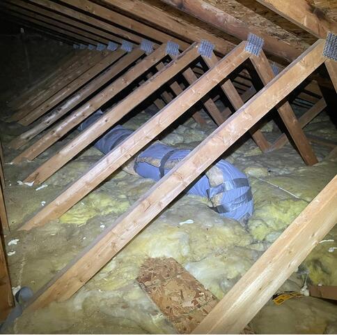 Our customer called us for she had a foul odor coming from her attic. After having another company out for a attic check she was told she had critter's living in there. Once critter control took care of the problem she was in need of a good cleanout and new insulation.