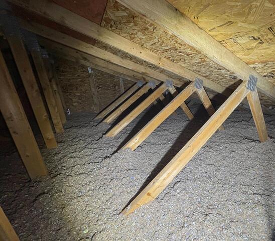 Our customer found mold in the attic after replacing a couple bath fans in his home. After our company remediated the mold we than air sealed and blew in new cellulose insulation. Resistant value in 60 with approximately 17".