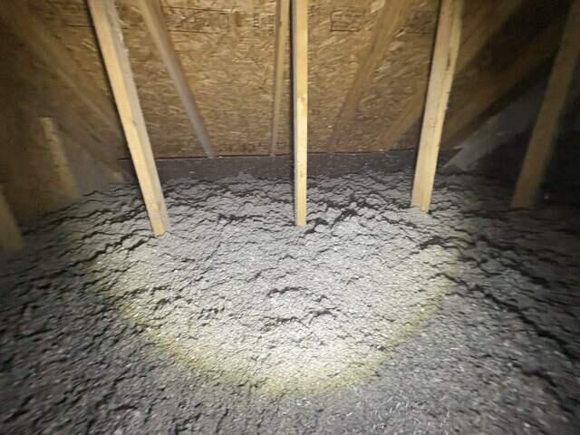 The homeowner explained that when he purchased the home mold was found in the attic and that it was caused by a lack of ventilation and the bath fans were venting into the attic because they were not properly connected to the roof cans that were previously installed. The homeowner also stated that droppings were found on the insulation which were a combination of mouse droppings and bat droppings. The attic contained high humidity and mold growth was present on the roof sheathing and trusses in the attic. The insulation was contaminated with urine and droppings from previous pests that had been inside the attic. The problem was caused by high humidity in the attic caused by two reasons: The first was a lack of ventilation coming from the soffits as they were completely blocked with insulation, and the second caused by humid air being vented into the attic through the bath fan vents because they were not connected to the roof cans properly. The homeowner chose to have the problem fixed because they had just brought the home and would like it to be their forever home. They wanted to make sure that the home was healthy for their family's health and that the home would be more energy efficient to save on heating and cooling costs. The homeowner's biggest concern with the problem was that his attic was full of mold and all of the family member's bedrooms are upstairs and he was worried for their health breathing that in.